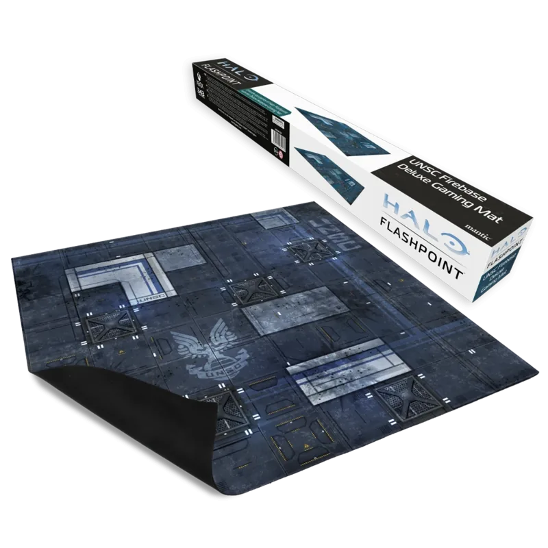 Mejora tu arena de juegos de guerra con el Tapete de Juego de Lujo Base de Fuego UNSC. Este es un tapete de juego de neopreno a todo color con respaldo de goma para mantener tu zona de combate en su lugar durante emocionantes partidas de Halo: Flashpoint. Superficie perfecta para batallas de miniaturas tácticas.